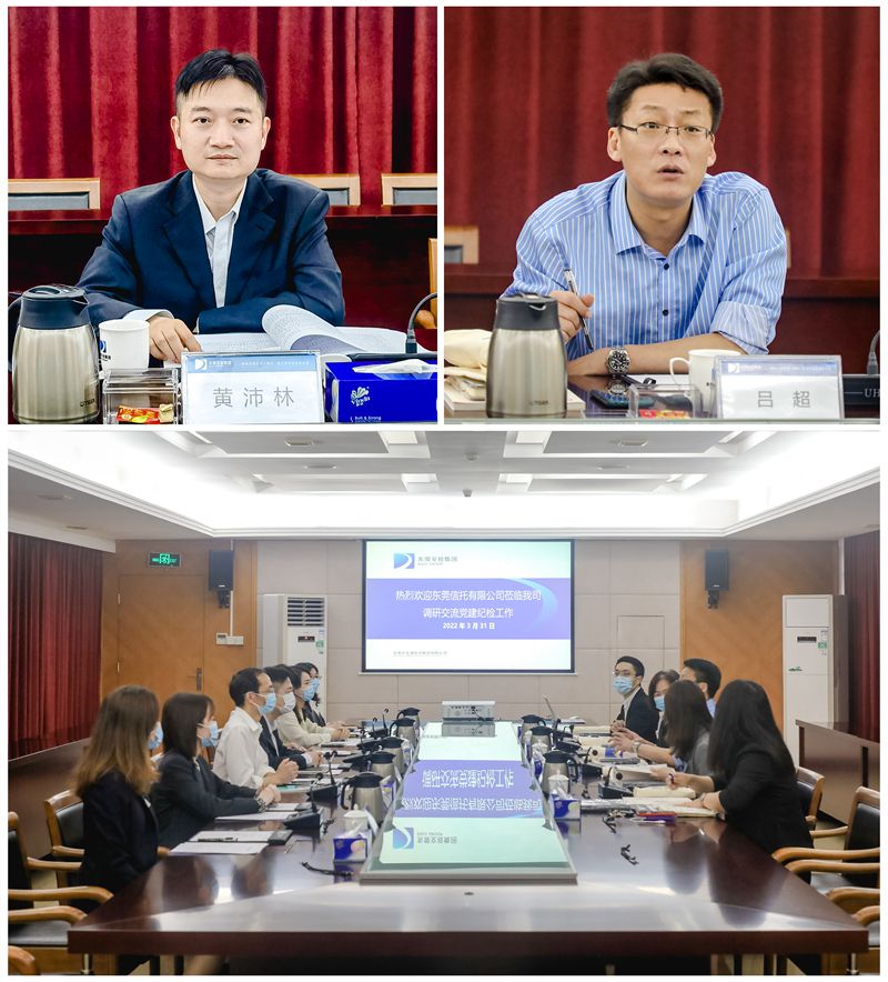 3月31日上午,東莞信托黨委委員、紀檢監(jiān)察組組長呂超率隊蒞臨我司調(diào)研交流黨建、紀檢工作。集團黨委副書記、紀委書記黃沛林參加活動。兩家公司的黨群、紀檢部門有關(guān)負責同志一同參加調(diào)研交流。