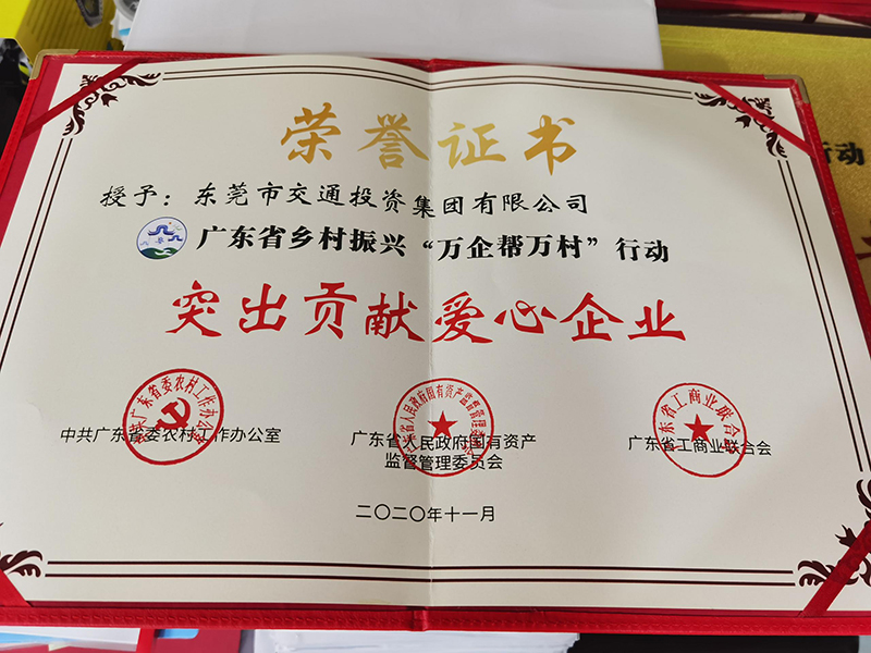 2020年市交投集團(tuán)榮獲“廣東省鄉(xiāng)村振興‘萬企幫萬村’行動突出貢獻(xiàn)愛心企業(yè)”稱號