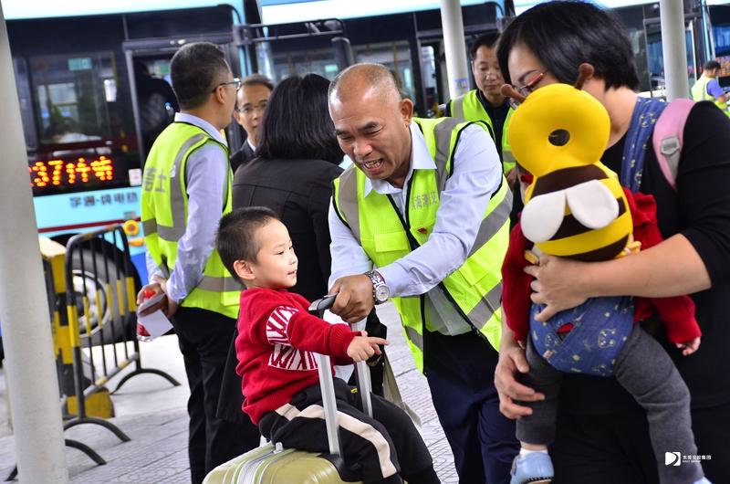 松山湖公交公司前往站場派發(fā)小紅旗,與乘客共度國慶。