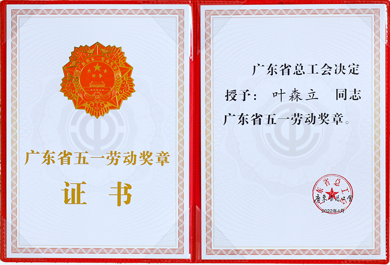 2022年4月28日,東莞控股公司葉森立榮獲“2022年廣東省五一勞動獎?wù)隆?/span>