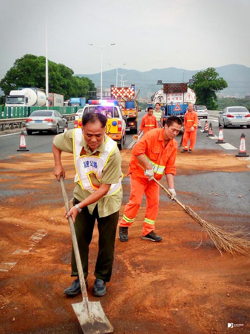市路橋公司?;⒎止臼召M(fèi)一線協(xié)助司機(jī)將壞車移動(dòng)到安全區(qū)