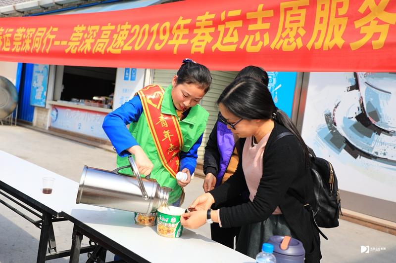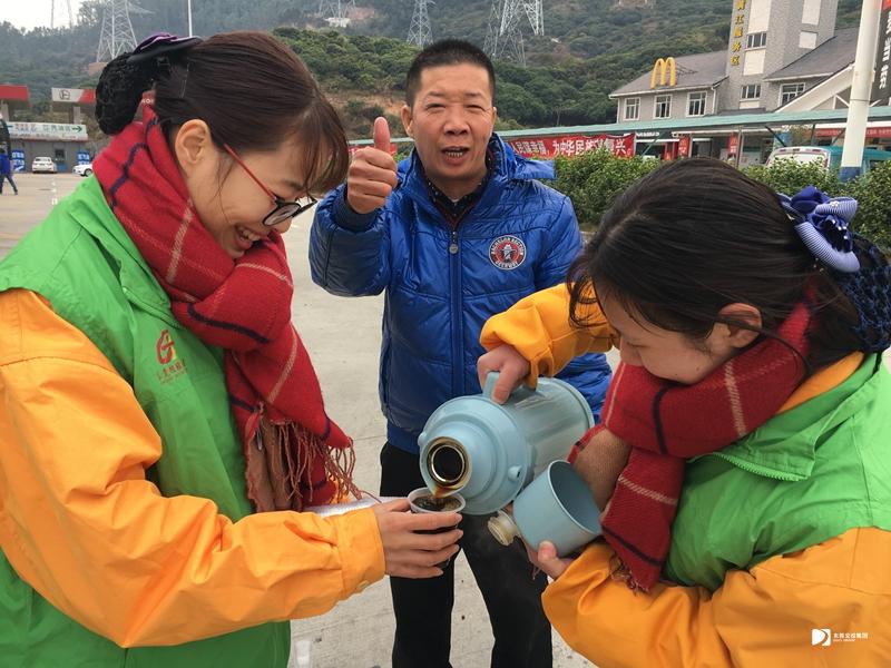 春運(yùn)期間,為途徑服務(wù)區(qū)的旅客送上熱開水