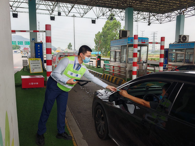 為提升通行效率,在高峰期的入口車道,工作人員手持預刷卡設備主動向排隊中的非ETC車輛司機發(fā)放通行卡,讓車輛行駛至入口處時無需在欄桿前停靠取卡,為司乘快速通行“爭分奪秒”。對此司機劉先生深有體會,“高峰期排隊時看到有工作人員主動提供發(fā)卡服務,內(nèi)心就沒有那么焦慮了?!?/span>