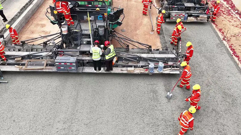 施工現(xiàn)場一派繁忙景象——機械轟鳴不絕,運輸車輛穿梭往來,建設(shè)者們晝夜輪班奮戰(zhàn)。在莞深高速十二標(biāo)施工現(xiàn)場,水穩(wěn)層攤鋪機正在有序作業(yè),工人們精細操作,均勻鋪展每一層材料。現(xiàn)場負責(zé)人表示:“當(dāng)前正值旱季施工黃金期,我們要緊抓有利時機,科學(xué)安排工序,在保障質(zhì)量的前提下全力推進進度。”