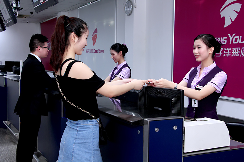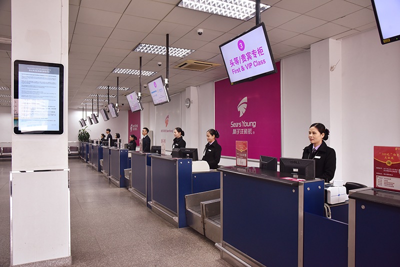 公司登記大廳一線員工時刻準備著為旅客辦理登機手續(xù)