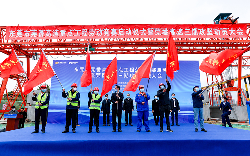 2022年12月14日,由東莞市總工會(huì)、東莞交投集團(tuán)工聯(lián)會(huì)聯(lián)合開(kāi)展東莞市莞番高速重點(diǎn)工程勞動(dòng)競(jìng)賽啟動(dòng)儀式在莞番三期項(xiàng)目現(xiàn)場(chǎng)舉行