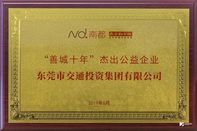 2019年6月22日,東莞市交通投資集團(tuán)有限公司榮獲“善城十年”杰出公益企業(yè)稱號。