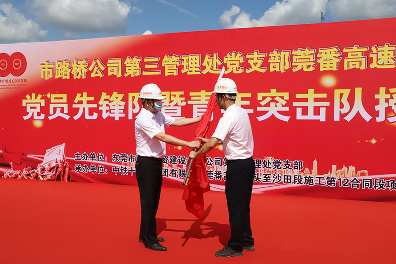 2020年7月17日,市路橋公司第二管理處黨支部舉行成立黨員先鋒隊暨青年突擊隊授旗儀式
