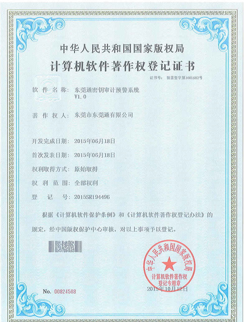 東莞通公司專利-東莞通密鑰審計(jì)預(yù)警系統(tǒng)V1.0