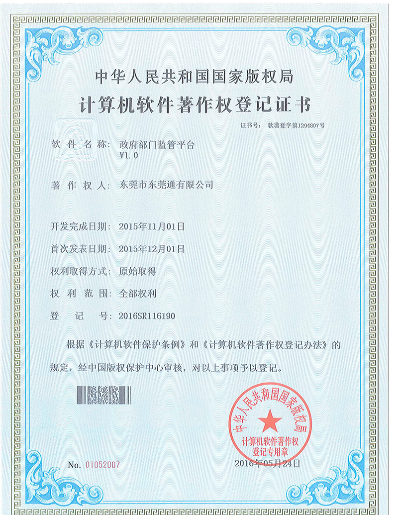 東莞通公司專利-政府部門監(jiān)管平臺(tái)V1.0