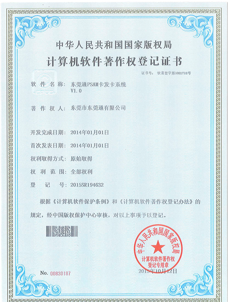 東莞通公司專利-東莞通聯(lián)名卡發(fā)卡系統(tǒng)V1.0