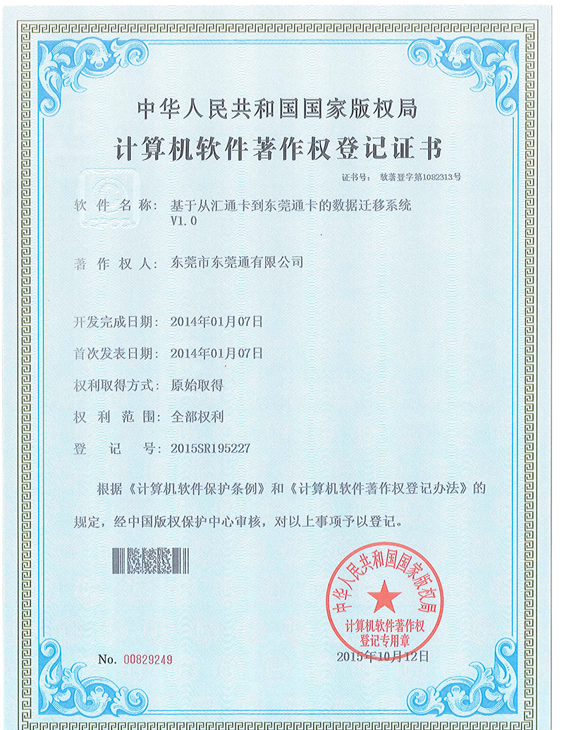 東莞通公司專利-基于從匯通卡到東莞通卡的數(shù)據(jù)遷移系統(tǒng)V1.0