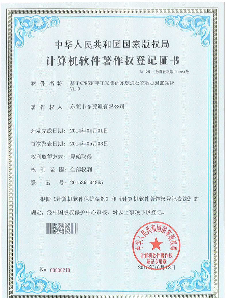 東莞通公司專利-東莞市智能公交管理平臺(tái)V1.1