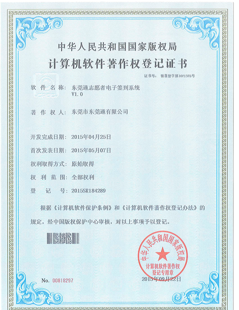 東莞通公司專利-東莞通志愿者電子簽到系統(tǒng)V1.0