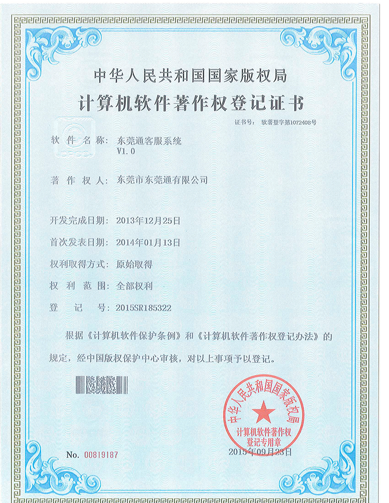 東莞通公司專利-東莞通客服系統(tǒng)V1.0