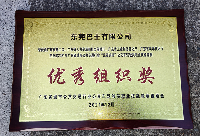 東莞巴士公司榮獲2021年廣東省城市公共交通行業(yè)“比亞迪杯”公交車駕駛員職業(yè)技能競(jìng)賽優(yōu)秀組織獎(jiǎng)